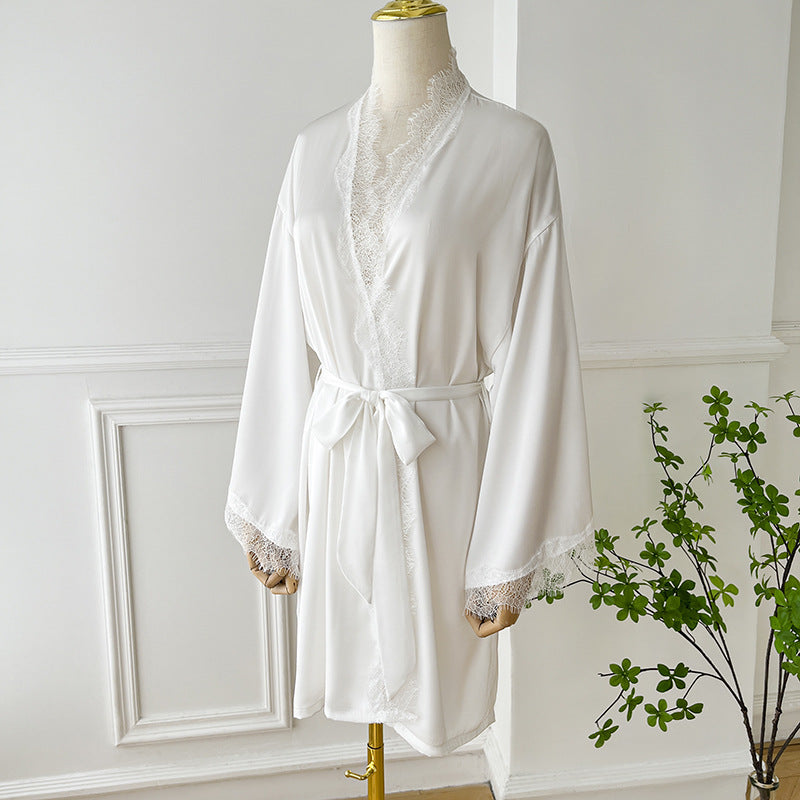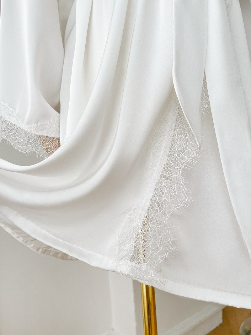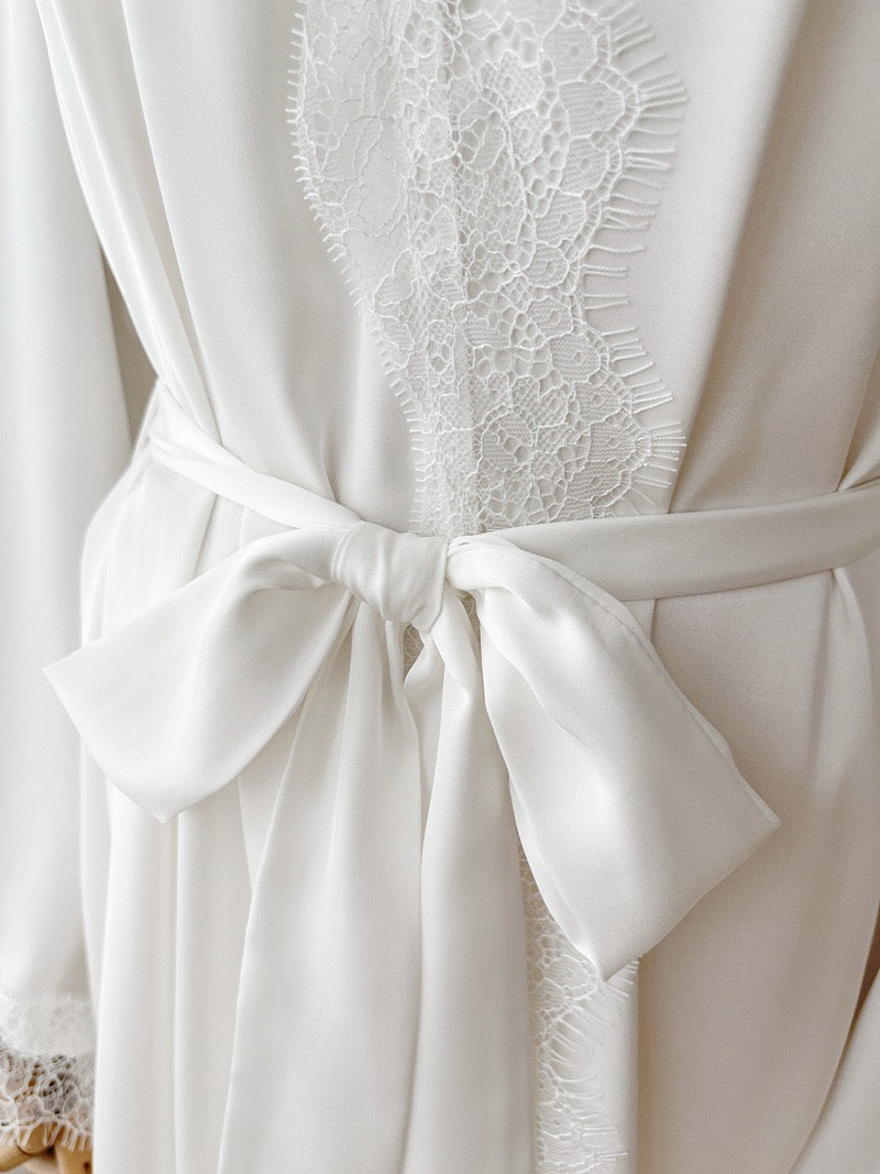 Our Perfect Robe for the Exquisite Brides! Get ready in our Classic Silk Robe in comfort as you have your makeup and hair done. Handcrafted from a quality blend of silk with a relaxed fit.