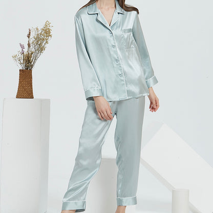 Emma Pure Silk Long Woman Pyjamas Set | Mint