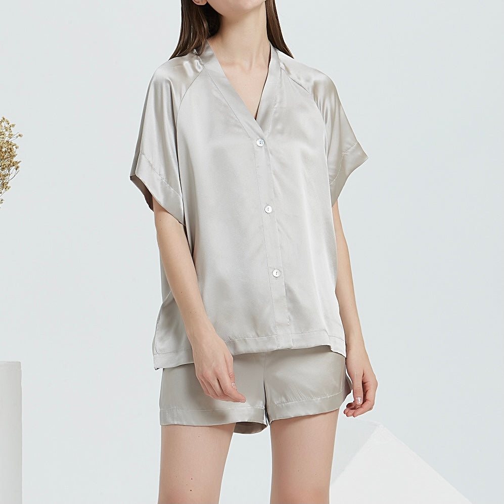 Natalia Pure Silk Short Pyjamas Set | Silver